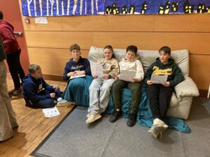Jeudi 15 janvier, les élèves de 6è ont passé l’après-midi au salon du livre jeunesse organisé à Tronjoly, par le Pays du Roi Morvan.