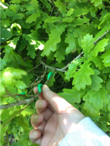 Les élèves participent à un projet de sciences participatives pour Bastien Castagneyrol chercheur à l’INRA de Bordeaux. Il cherche à connaître le rôle des prédateurs sur le contrôle des dégâts d’insectes sur les chênes. Ils ont posé 20 fausses chenilles en pâte à modeler sur chaque chêne et observé 2 semaines plus tard les marques des prédateurs sur leurs fausses chenilles. Des observations sont faites par des écoles sur tout le continent du Portugal à la Suède.